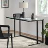 1.The modern, stylish computer desk is a must have for any home office. The tempered glass top provides you with a clean working surface, while providing ample space for all of your files and paper work, while still working on your computer. This elegant desk also has an open back which allows you the freedom to move your legs about, instead of cramping them into a tight, constricting space.