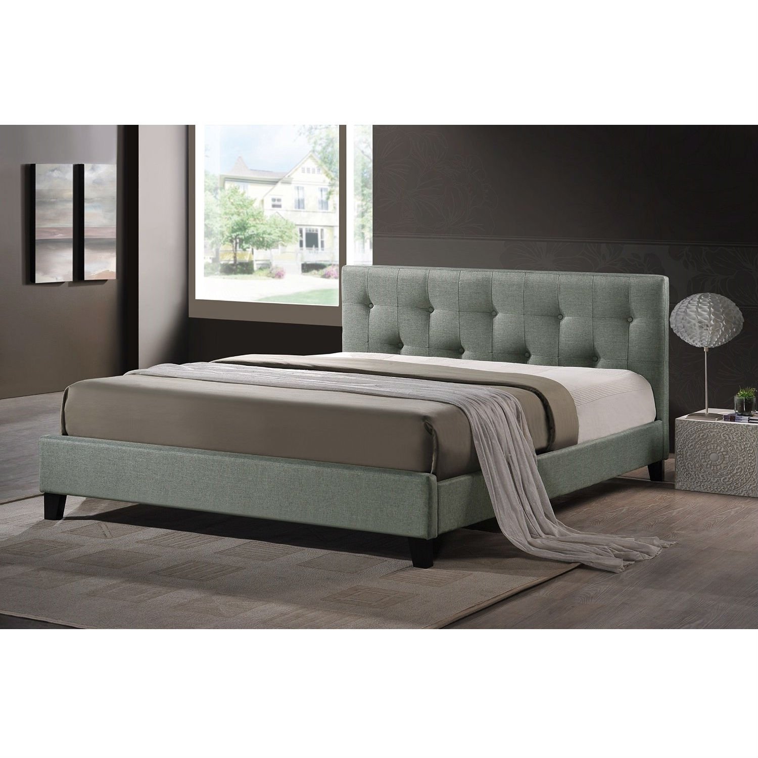 Queen size Gray Linen Upholstered Platform Bed with Headboard