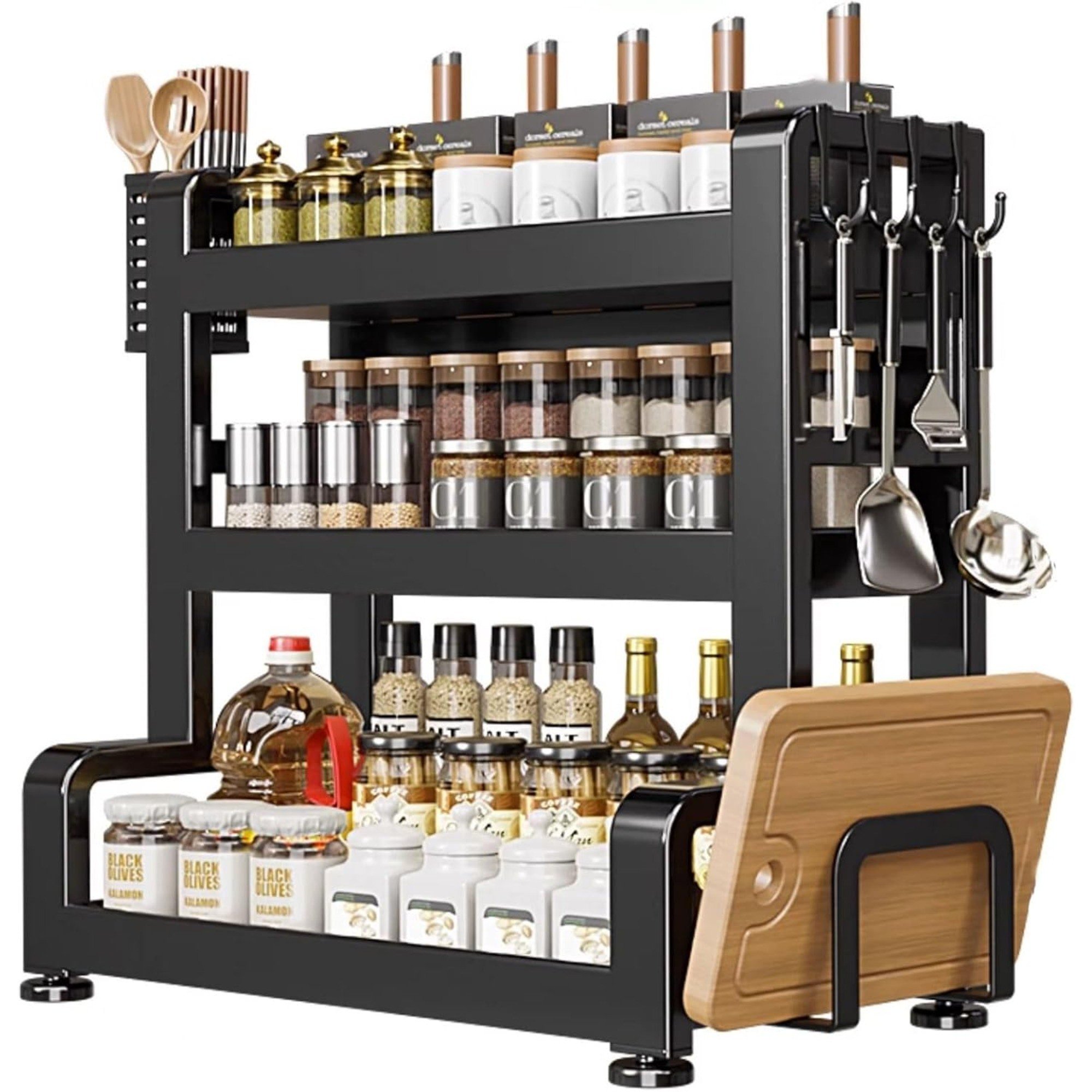 Elegant Multi-Layer Metal Kitchen Organizer - Countertop Spice Rack, Knife & Utensil Holder, Condiment Basket